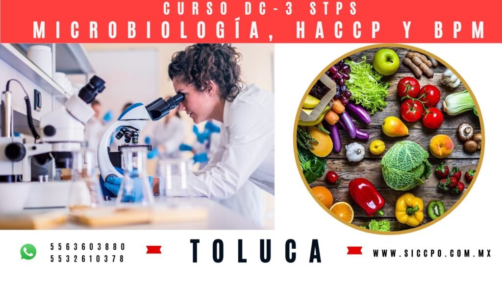 Curso DC-3 STPS sobre BPM, Microbiología y HACCP dirigido a la industria alimentaria en Toluca. para estudiantes. El horario es de 9:00 am a 18:00 horas.